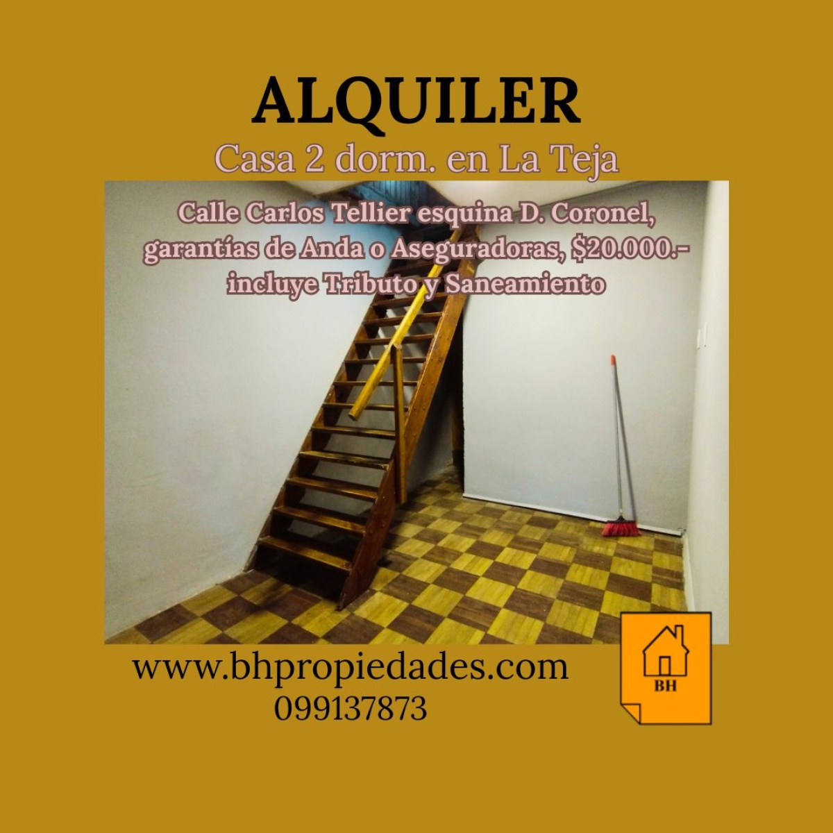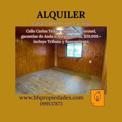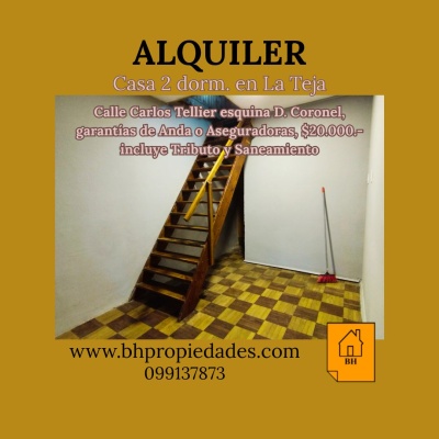 Alquiler de casa en dos plantas, 2 dormitorios, baño, cocina integrada a living comedor con estufa a leña, patio . Precio $ 20.000- incluye Tributo Domiciliario y Saneamiento. Garantías de Anda o Aseguradoras.